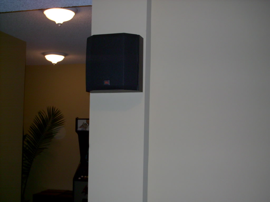 This photo shows one of the satellite speakers mounted just behind the seating position. You will note that these speakers are identical to the rear satellite speakers in the previous photo. We used direct satellite speakers for all of the surrounds. We could have used dipole (sending sound in two directions) speakers here, but the owner preferred this application.